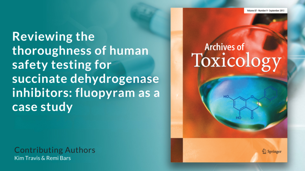 This recent paper, coauthored by RSA consultants Kim Travis and Remi Bars and published in Archives of Toxicology, assesses the mammalian toxicology studies available for the succinate dehydrogenase inhibitor (SDHI) fungicide fluopyram. The assessment was made as a case study, in light of suggestions that standard regulatory studies may not identify key toxicities related to the SDHI mode of action. The regulatory toxicity studies with fluopyram identify primary effects on the liver and thyroid, with additional renal findings in male rats. The mechanisms of toxicity for these findings are shown to be both unrelated to succinate dehydrogenase inhibition and not of human relevance. Most toxicity studies with fluopyram are untargeted, but include a huge number of endpoints in order to detect toxic effects. While effects consistent with succinate dehydrogenase inhibition would most likely be seen in the nervous system, heart and muscle; these effects are notably absent in the multiple studies available for fluopyram across different mammalian species. It is therefore concluded that the human safety of fluopyram has been thoroughly investigated in the available studies. The absence of effects related to succinate dehydrogenase inhibition is likely to be a consequence of the low affinity of fluopyram for the mammalian enzyme, and the rapid metabolism of fluopyram in mammalian species.